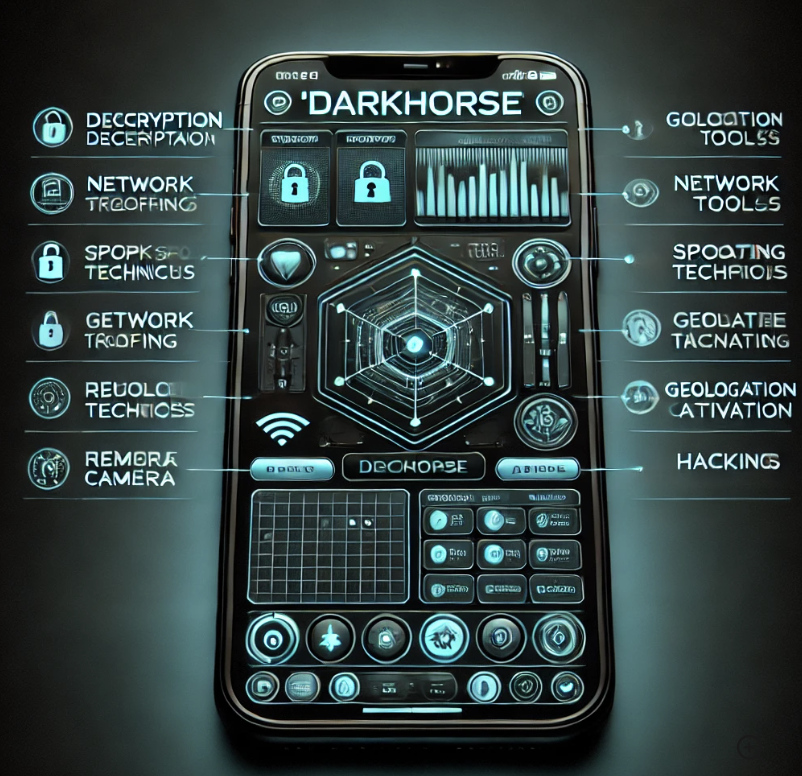 Darkhorse is a sophisticated and elusive cyber infiltration tool designed to compromise mobile devices. This hacking program is renowned in underground tech circles for its powerful capabilities and stealth.